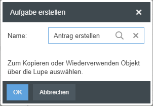 Wird ein neues Objekt im Prozessmodell erstellt, muss dafür ein Name definiert werden (z. B. für eine Aufgabe).