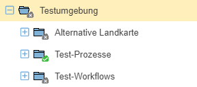Enthaltene Objekte wiederverwenden (Checkbox nicht aktiviert) | Die Prozessgruppe "Testumgebung" wird als Kopie mit eigener ID neu erstellt. Die untergeordneten Objekte werden in diese neu erstellte Kopie verlinkt. Dabei haben Sie die gleiche ID, wie die ursprünglichen Objekte. |
