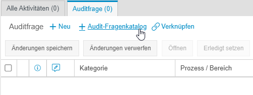 In der Aktivitätenliste des Vorgangsfensters können Sie anschließend über <+ Audit-Fragenkatalog> auf die Einträge des Auditfragen-Katalogs zurückgreifen.