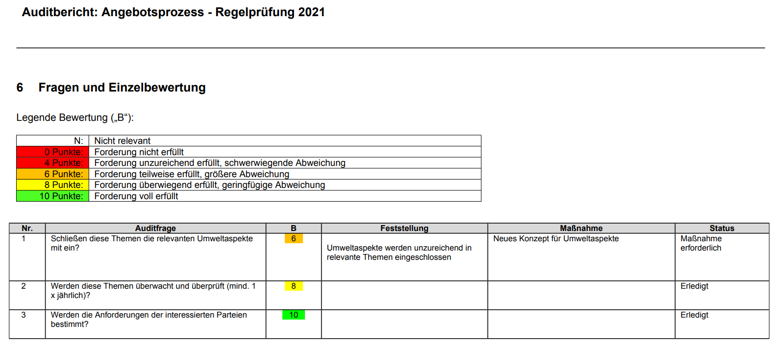 - Bewertung mindestens 8 -> Keine relevante Abweichung. Die Auditfrage ist damit erledigt.