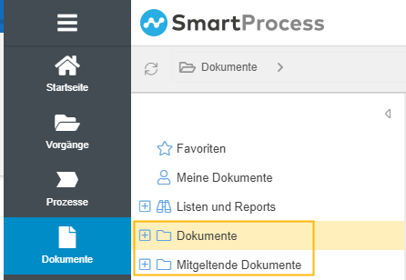 Je nachdem wie das Dokument verknüpft wurde, wird es an unterschiedlichen Stellen in SmartProcess angezeigt: