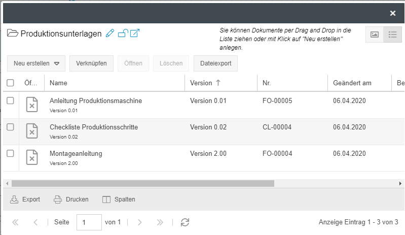 - Die Erstellung von neuen Dokumenten ist ebenfalls möglich, in dem eine Datei per Drag & Drop in dem Fenster des Dokumentenordners abgelegt wird