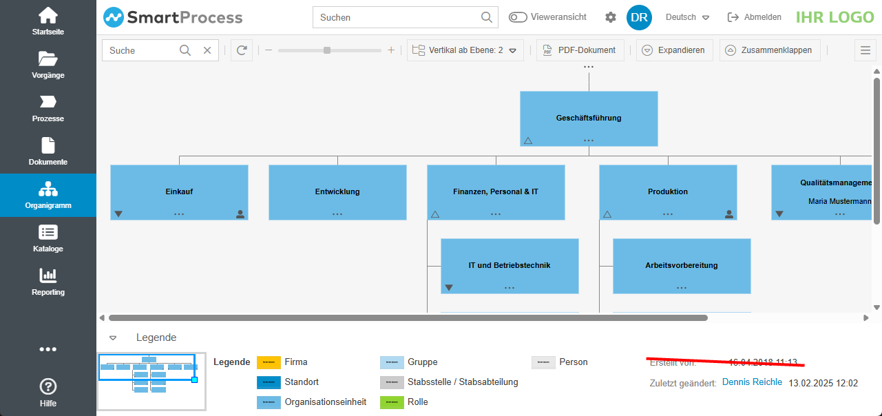 - Die Signatur Erstellt von wurde aus der Legende des Organigramms entfernt, da diese Information keine Aussagekraft besaß.
