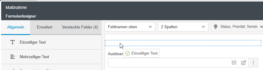 - Im Formulardesigner können Felder und andere Elemente nun auch in die oberste Zeile eingefügt werden.