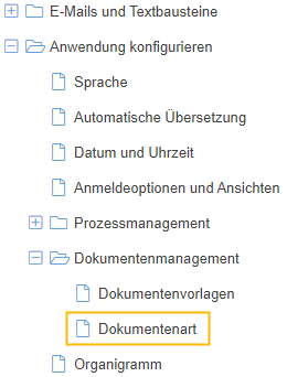 - Die Dokumentenart von Dokumenten ist jetzt im Menü Einstellungen unter dem Menüpunkt Dokumentenmanagement verwaltbar.