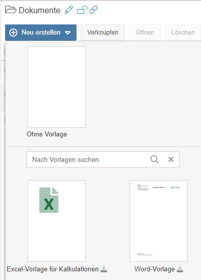 - Es wurde eine Suchleiste integriert, um alle Dokumentenvorlagen zu durchsuchen.
