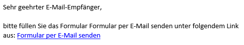 Mit dem Objekt "Formular per E-Mail senden" können Eingabeformulare aus dem Vorgang per E-Mail an externe Personen gesendet werden. Über einen Link in der E-Mail lässt sich das Formular im Webbrowser öffnen und vom Anwender ausfüllen und zurück schicken.
