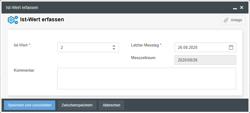 In dem Formular der Aufgabe wird der Ist-Wert sowie das Datum. an dem dieser Messwert erhoben wurde, eingetragen.