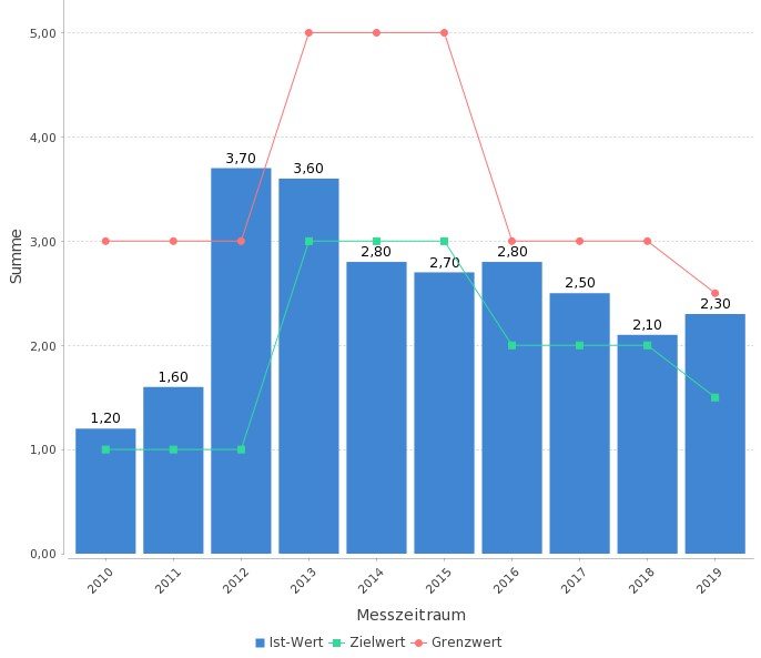 -> Der letzte erfasste Wert liegt zwischen dem Ziel- und Grenzwert der Kennzahl - Rot