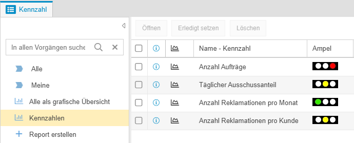 Ab der ersten Erfassung gibt eine Ampel im Vorgangsfenster Aufschluss über den Stand der Kennzahl:
