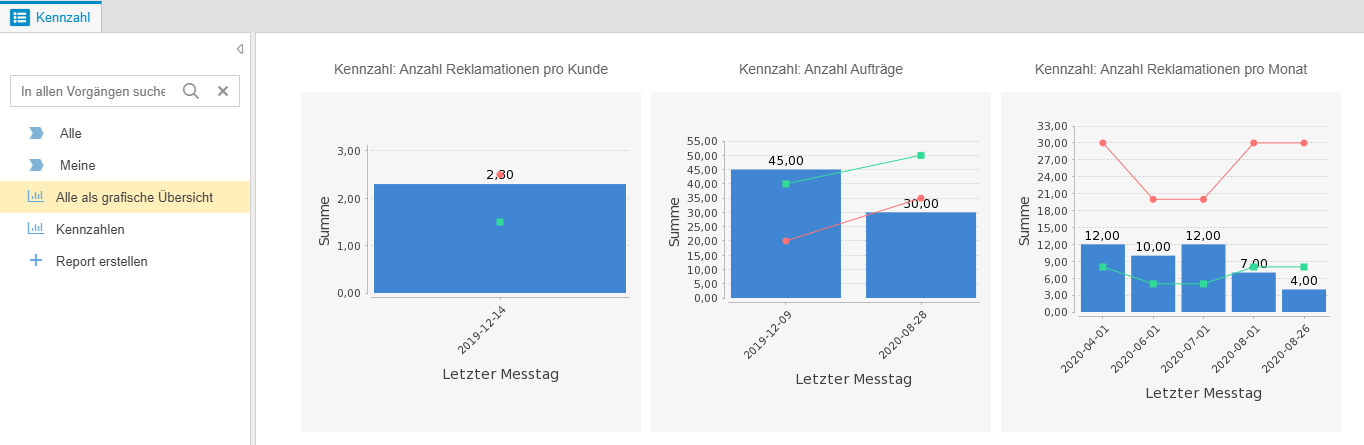 Individuelle Auswertungen für Kennzahlen können mit Reporting für Vorgänge erstellt werden.