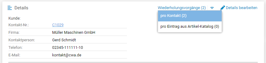 Sofern in den Workflow-Einstellungen aktiviert wurde, dass Wiederholungsvorgänge angezeigt werden sollen, wird dieser Hinweis neben dem Button <Details bearbeiten> angezeigt.