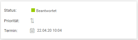 Neben den Details befindet sich ein Fenster, dass den Status, die Priorität, sowie den nächsten Termin anzeigt.