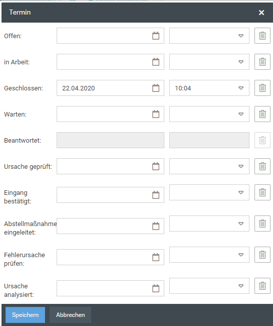 Für Status, die der Vorgang schon passiert hat, kann kein neuer Termin gesetzt werden.