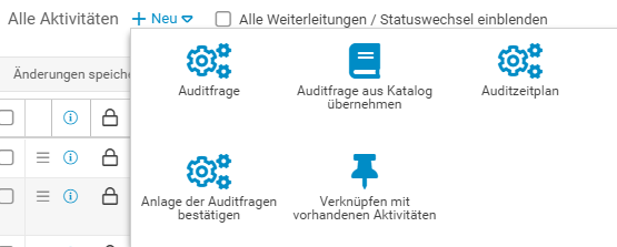 Über den Button <+ Neu> können ad hoc neue Aktivitäten zu dem Vorgang hinzugefügt werden.