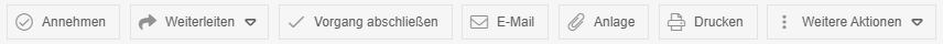 Neben dem Namen der Vorgangsart und der eindeutigen Vorgangsnummer wird auf der rechten Seite das Hauptmenü des Vorgangs angezeigt.