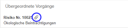 - Im Vorgangsfenster wird in dem Bereich Verknüpfte/Übergeordnete Vorgänge eine Büroklammer neben der Vorgangsnummer angezeigt, wenn in dem verknüpften Vorgang Dateianlagen enthalten sind.