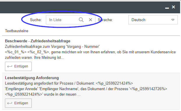 - Für das Versenden einer E-Mail aus dem Vorgang wurde eine Suche für Textbausteine eingefügt.