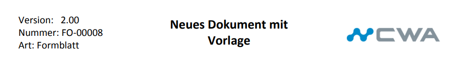 Im folgenden Beispiel wird eine normale Word-Datei erstellt und eine Kopfzeile mit einem Unternehmenslogo sowie einigen Mergefields eingefügt, die u. a. den Dokumentennamen und die Versionsnummer ausgeben sollen.