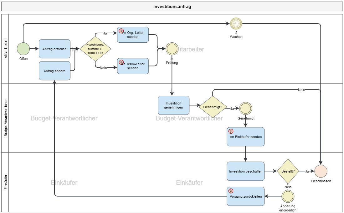 Workflow-Objekt: Start-, Zwischen- und Endereignis