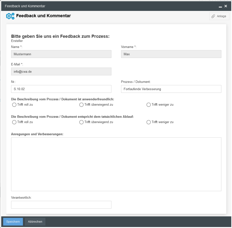 Über das Feedback und die Kommentare können auch Benutzer ohne Bearbeitungsrechte Auffälligkeiten und Fehler melden oder sich mit Ideen an der Weiterentwicklung des Prozesses beteiligen.