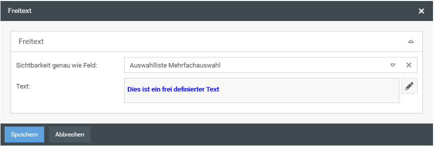 Der Freitext kann in Abhängigkeit zu einem anderen Feld ein- oder ausgeblendet werden.