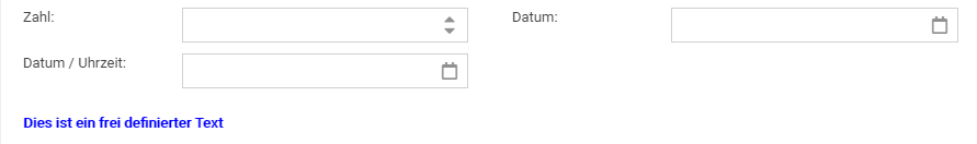 Mit einem Feld vom Typ "Freitext" kann Freitext erstellt werden, der Im Vorgang als Text angezeigt wird. Dieser kann z.B. als Hilfestellung für das Ausfüllen des Formulares genutzt werden, oder als Überschrift für Datenbereiche.