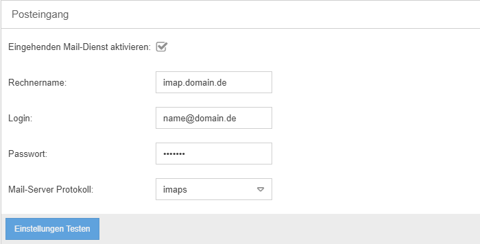 - Rechnername -> Der Rechnername oder die IP des POP3 oder IMAP Servers
