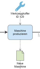 Das Artefakt Betriebsmittel wird im Prozessmodell genutzt, wenn für die Durchführung einer Aufgabe ein Betriebsmittel verwendet werden soll. Betriebsmittel können dabei materiell (Maschinen, Werkzeuge) oder immateriell sein (Lizenzen, Patente).