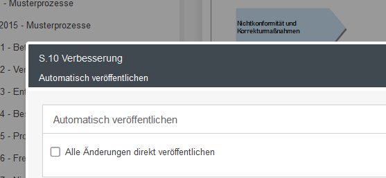 Prozessgruppen automatisch bei Erstellung als Arbeitsversion veröffentlichen