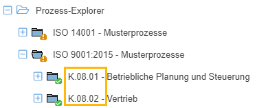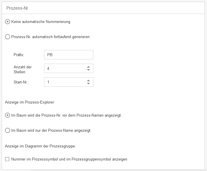 Ist die Option aktiviert, wird die Nummer von Prozessgruppen und Prozessen im Prozess-Explorer angezeigt. Ist die Option deaktiviert, wird an der Stelle lediglich der Prozessname angezeigt.