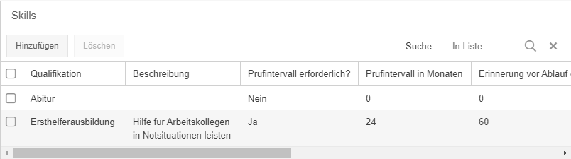 - Bei Ja ist diese Qualifikation immer nur für einen begrenzten Zeitraum gültig, wenn ein Mitarbeiter sie erworben hat.
