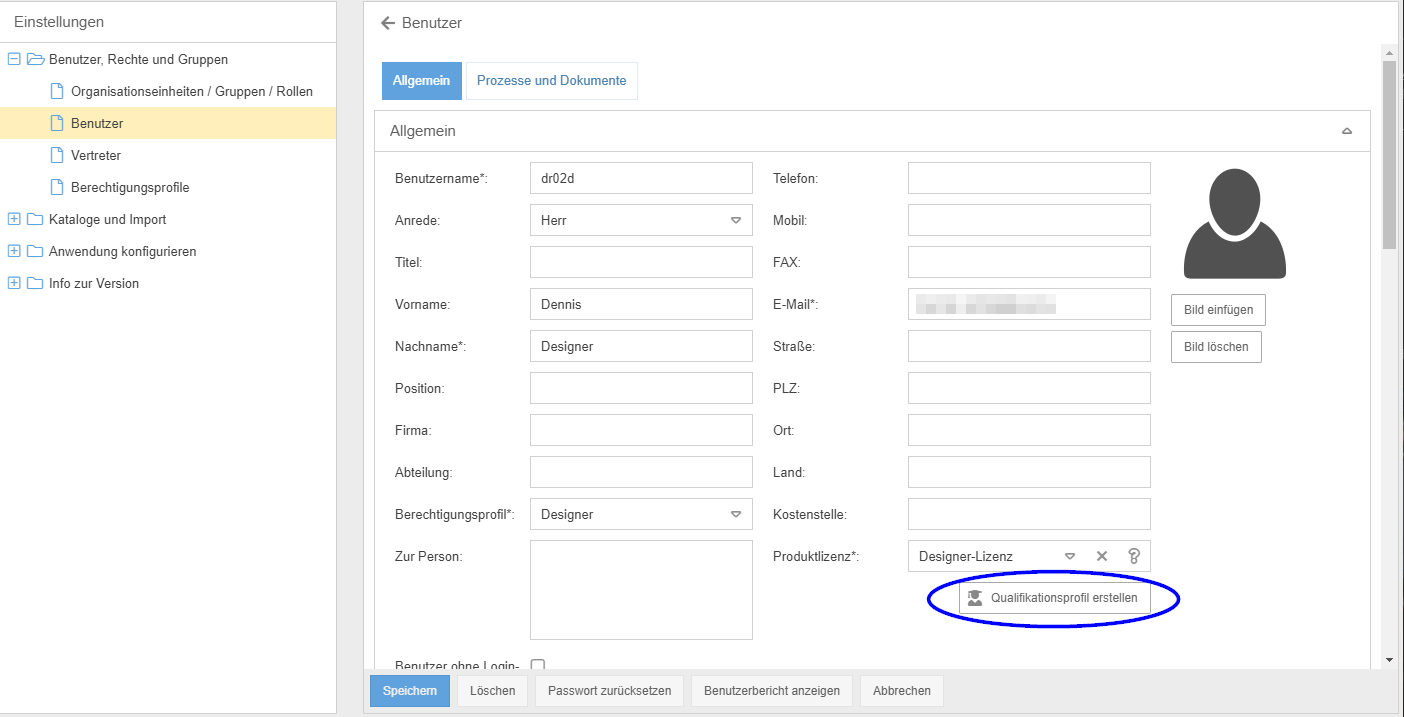 Qualifikationsprofil für Benutzer erstellen