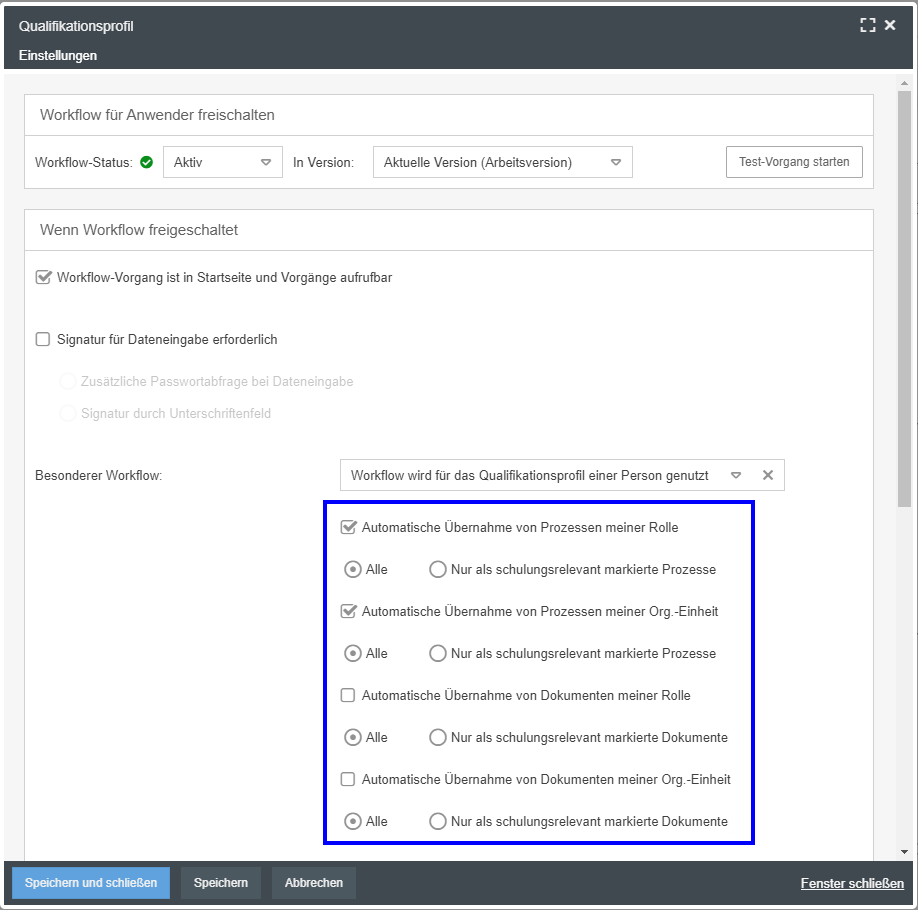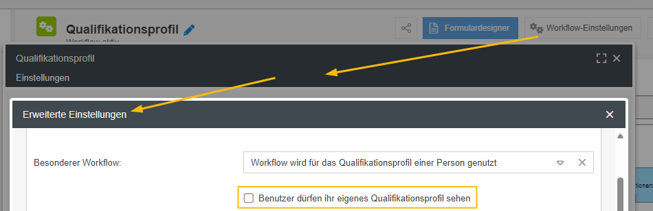 Workflow-Einstellung ändern: Jeder Benutzer darf das eigene Qualifikationsprofil sehen