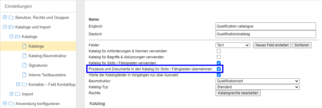 Qualifikationskatalog verwalten