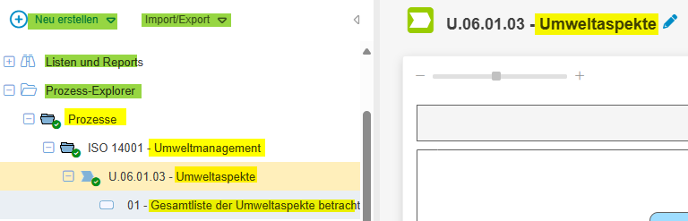 Content-Sprachen (im Bild gelb) hingegen beziehen sich auf alle von Anwendern selbst erstellten Inhalte wie z. B. Prozessnamen, Aufgabenbeschreibungen oder Wiki-Artikel. Sie können in diesem Menü jederzeit frei hinzugefügt werden.