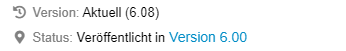 ![]() Unveröffentlichte Änderungen | Seit der letzten Veröffentlichung wurden Änderungen am Prozess vorgenommen. Benutzer mit Leserechten für den Prozess sehen diesen in der veröffentlichten Version (im Beispiel Version 6.00). Benutzer mit Bearbeitungsrechten sehen den Prozess im aktuellen Bearbeitungsstand (im Beispiel Version 6.08) ![]() Der Screenshot zeigt einen Ausschnitt aus der Liste Details in den Prozessdetails. |