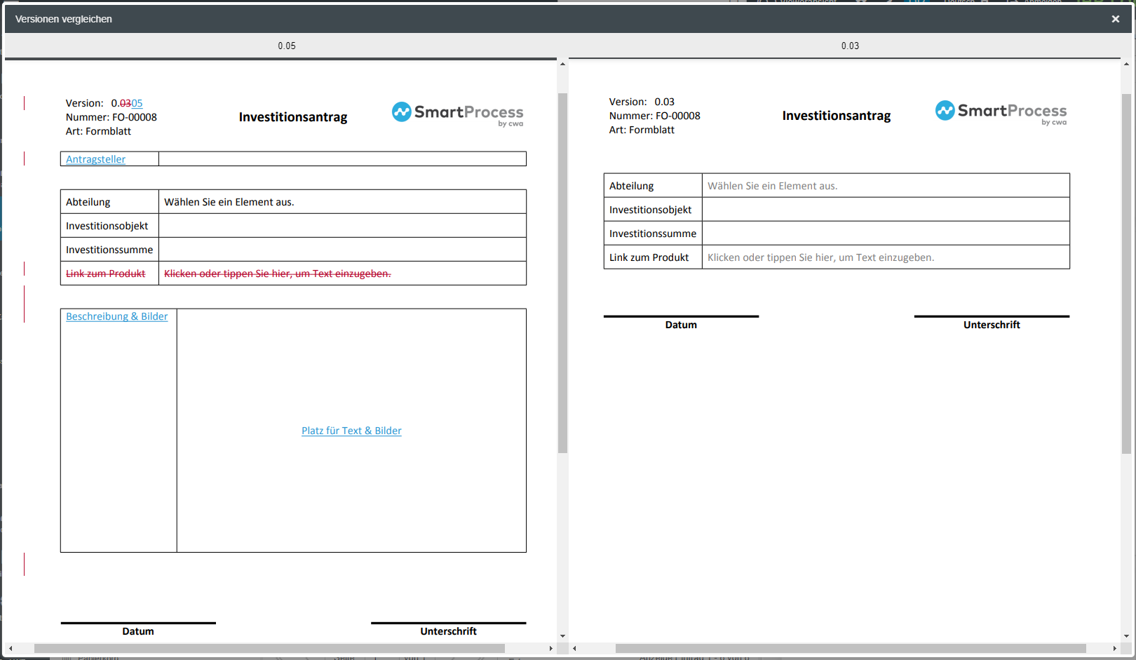 Versionsvergleich für Prozesse