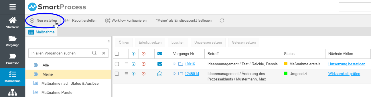 Es gibt verschiedene Möglichkeiten einen neuen Maßnahmen-Vorgang zu erstellen: