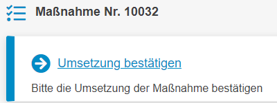 Wenn die verantwortliche Person den Auftrag ausgeführt hat, kann sie im Vorgangsfenster über die Aufgabe "Umsetzung bestätigen" dokumentieren, dass die Maßnahme erfolgreich umgesetzt wurde.