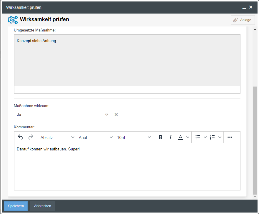 - Wird die Wirksamkeit mit Ja beurteilt, wird der Maßnahmen-Vorgang erfolgreich abgeschlossen.