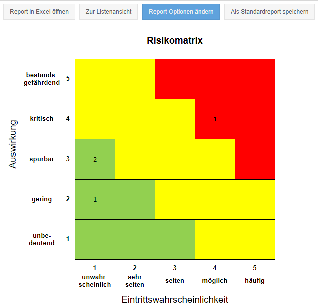 Mit der Installation des Moduls Risikomanagement wird Ihnen auch der gespeicherte Report Risiko-Matrix zur Verfügung gestellt.