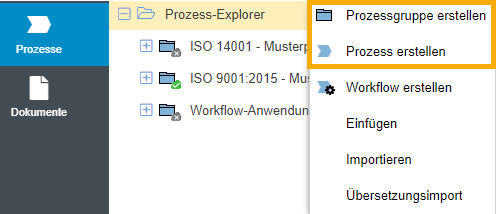 Erstellung von Prozessgruppen und Prozessen auf der ersten Prozessebene | Wenn diese Option aktiviert ist, dürfen die Benutzer auf der ersten Ebene des Prozess-Explorers neue Prozessgruppen und Prozesse erstellen. ![]() |