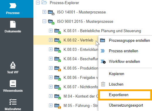 Gültigkeit von Prozessen als Verantwortlicher bearbeiten