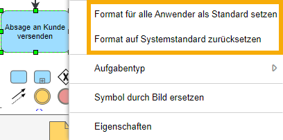 Das Format von Prozessmodell-Symbolen als Standard setzen | Wenn diese Option aktiviert ist, dürfen die Benutzer im Prozessdesigner das Standardformat von Modellierungsobjekten für die gesamte Anwendung ändern und das Standardformat auch wieder auf den Systemstandard zurücksetzen. ![]() |