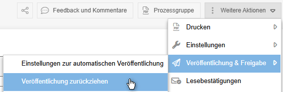Prozesse zurückziehen und zurückgezogene Prozesse löschen | Wenn diese Option aktiviert ist, dürfen die Benutzer veröffentlichte Prozesse zurückziehen, sprich eine Veröffentlichung rückgängig machen: ![]() Ebenso ist damit das Löschen von zurückgezogenen Prozessen gestattet. |