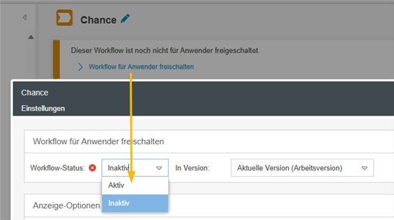 Workflow-Prozesse für Anwender freischalten | Wenn diese Option aktiv ist, dürfen die Benutzer selbst erstellte oder importierte Workflows aktiv schalten, sodass andere Personen diese benutzen können. ![]() |