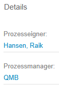 Gültigkeit von Prozessen als Prozesseigner oder Prozessmanager manuell bearbeiten | Wenn diese Option aktiv ist, dürfen die Benutzer, die als Prozesseigner oder Prozessmanager in den Prozessdetails hinterlegt sind, die Gültigkeit dieses Prozesses manuell verlängern, egal, ob das Objekt noch gültig oder die Gültigkeit bereits abgelaufen ist. ![]() |