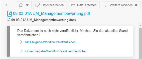 Sofern das Dokument noch nicht veröffentlicht ist oder unveröffentlichte Änderungen enthält, wird Ihnen angeboten die Veröffentlichung vorzunehmen.