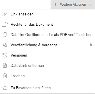 - Link zur Datei -> Öffnet analog zu dem vorherigen Punkt direkt die aktuellste Version der Dateianlage des Dokuments in der Browser-Vorschau bzw. startet den Download der Datei, falls keine Vorschau verfügbar ist.